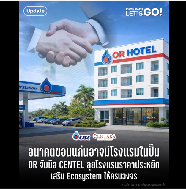 อนาคตขอนแก่นอาจมีโรงแรมในปั๊ม OR จับมือ CENTEL ลุยโรงแรมราคาประหยัดเสริม Ecosystem ให้ครบวงจร