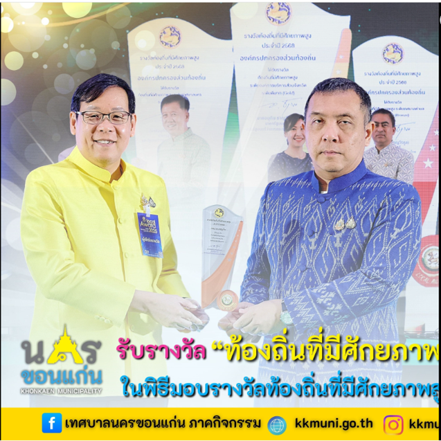 เทศบาลนครขอนแก่น ได้รับการคัดเลือกรางวัลที่ 2 ในประเภทดีเลิศ ในโครงการนวัตกรรม “แก่น เก๋า โก้ เก๋ เก้า กิ่ง” ที่เป็นการดูแลผู้สูงอายุแบบครบทุกมิติ