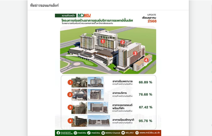 ความคืบหน้า “ศูนย์บริการการแพทย์ชั้นเลิศ” โรงพยาบาลศรีนครินทร์ เดือนตุลาคม 2568