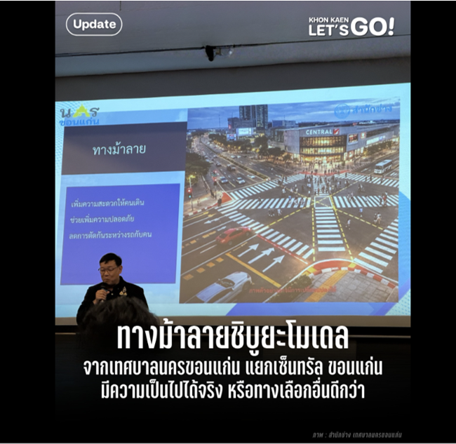 ทางม้าลายชิบูยะโมเดล จากเทศบาลนครขอนแก่น แยกเซ็นทรัล ขอนแก่น มีความเป็นไปได้จริง หรือทางเลือกอื่นดีกว่า |